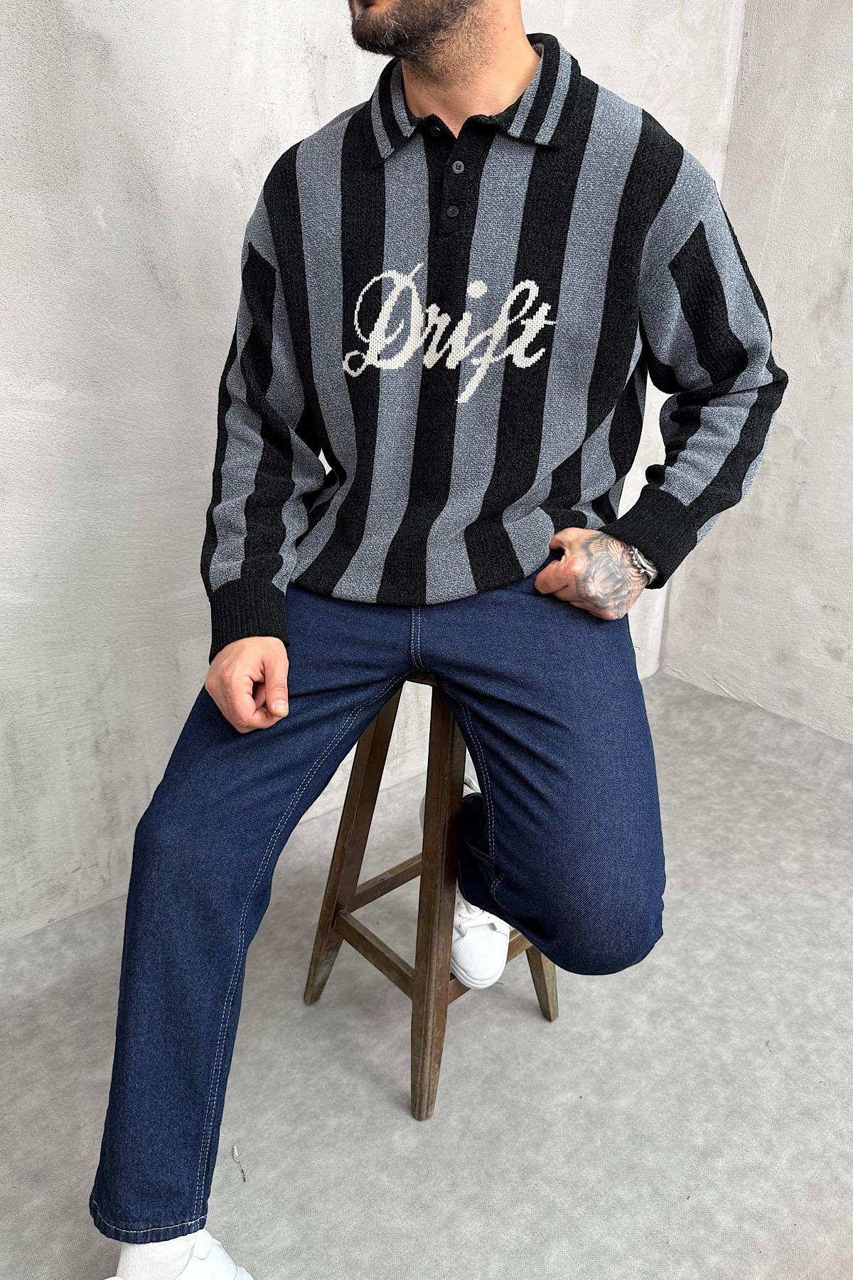 Jakarlı Çizgili Polo Yaka Kazak (S0500)