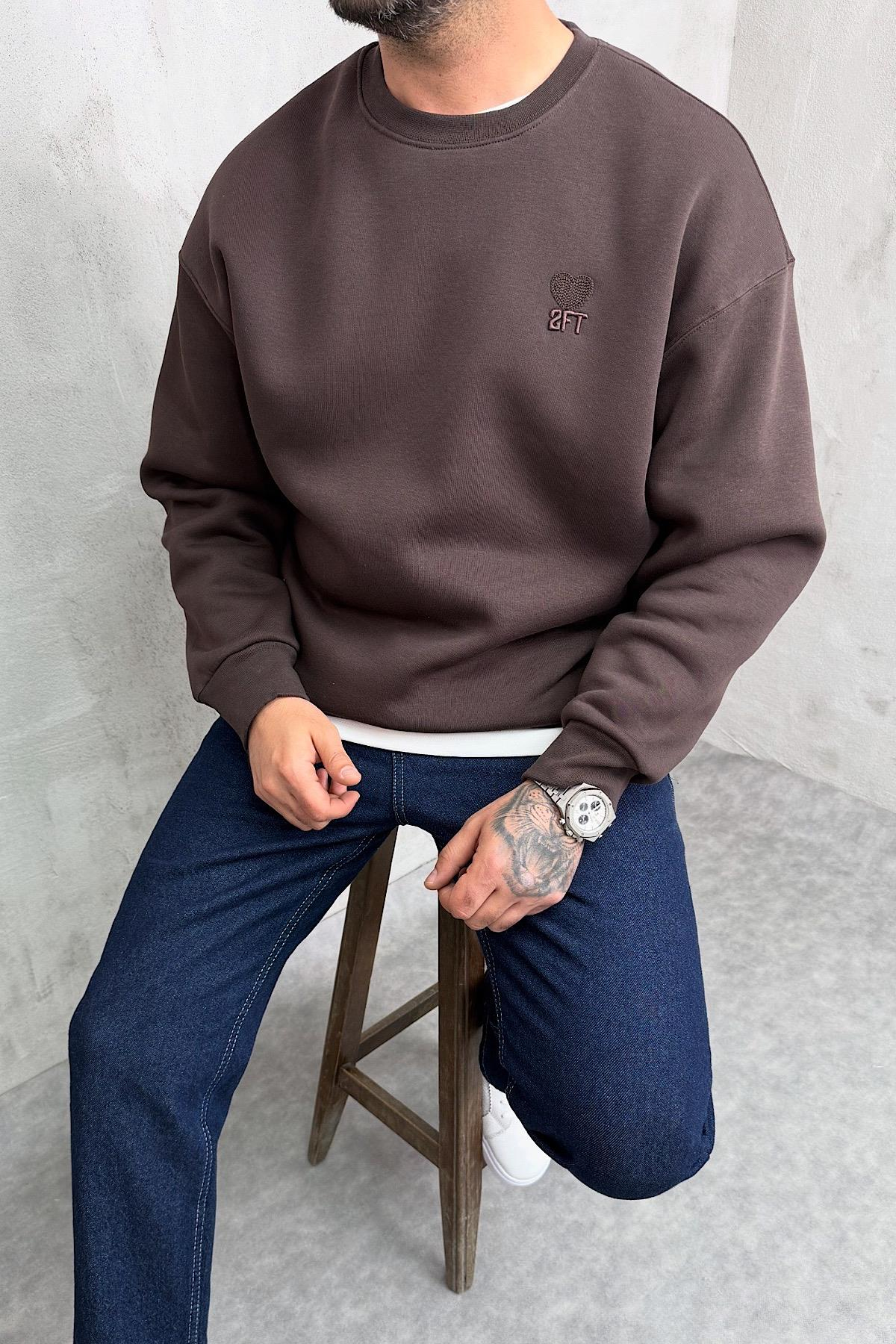 Kahve 2FT Baskılı Sweatshirt (S0484)