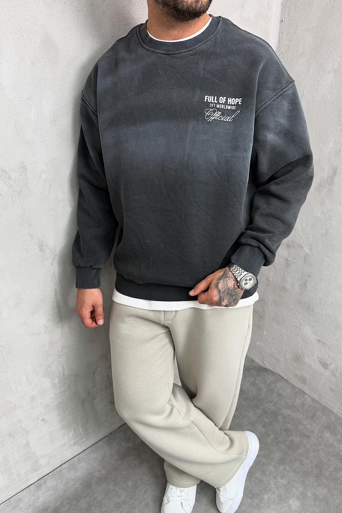 Yıkamalı Antrasit Baskılı Sweatshirt (S0486)